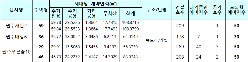 원주시 국민임대주택 모집대상 주택