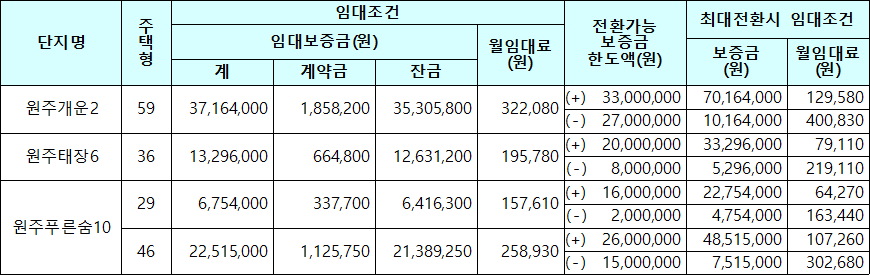 원주시 국민임대주택 임대조건