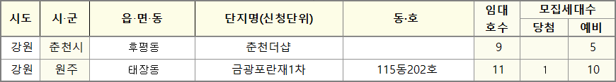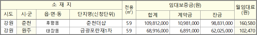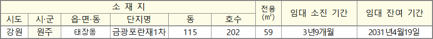 | 주택명 | 강원 청년신혼부부매입임대리츠주택 재임대 |
