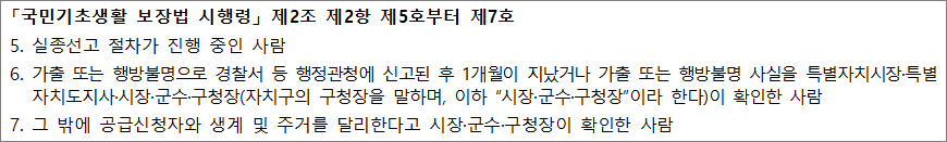 ※ 세대원의 실종, 별거 등으로 소득ㆍ자산파악이 불가능한 경우에는 주민등록표 말소를 확인하고 소득ㆍ자산산정의 대상에서 제외함.